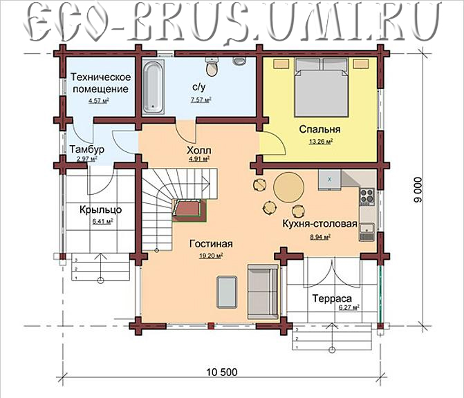 - Сруб из бруса 150х150, основные стены 1 этажа высота 3 метра.
